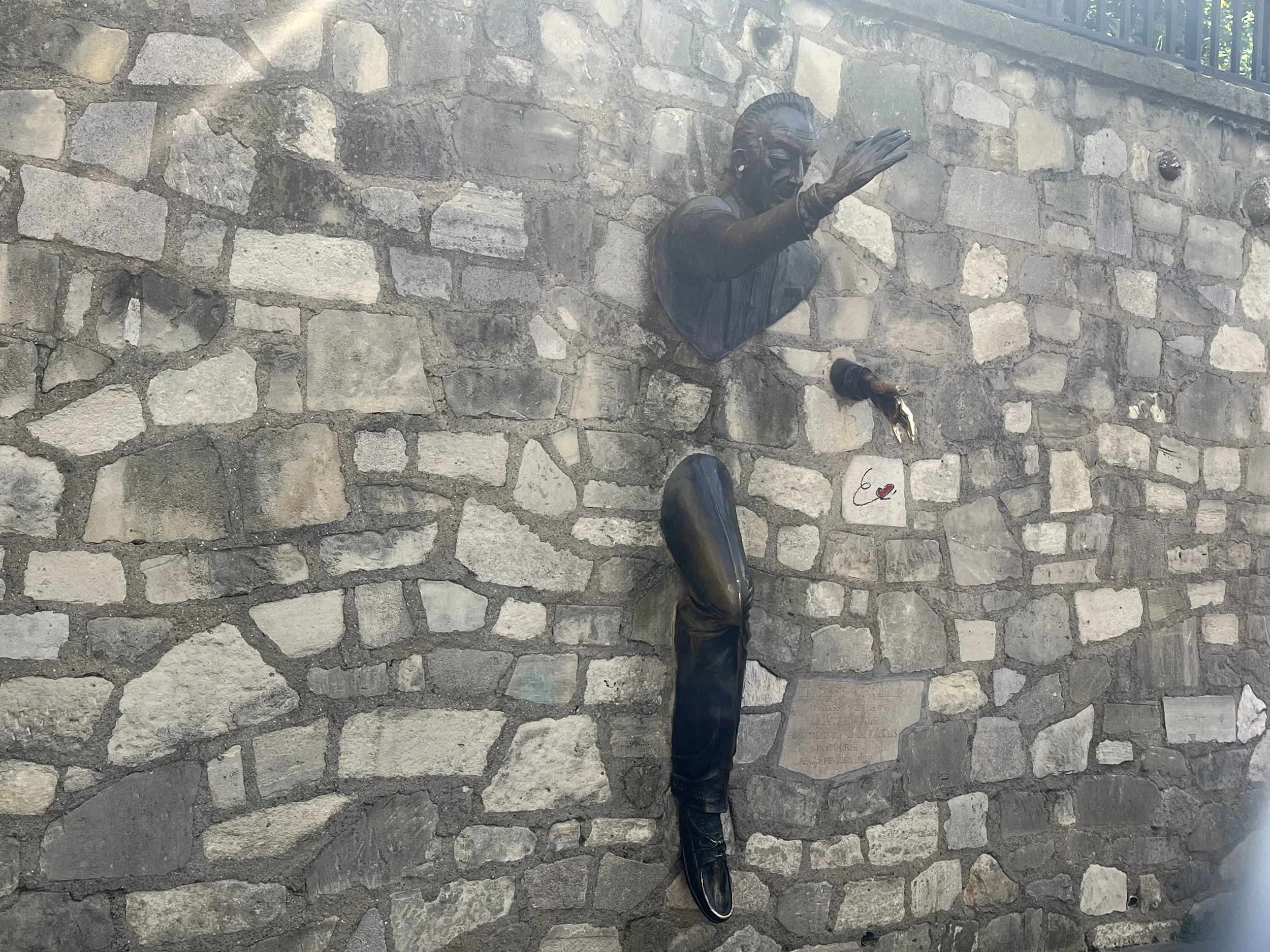 Le Passe-Muraille is a famous bronze sculpture created by artist Marcel Aymé (with the sculpture based on his literary character, shaped by sculptor Jean Marais).